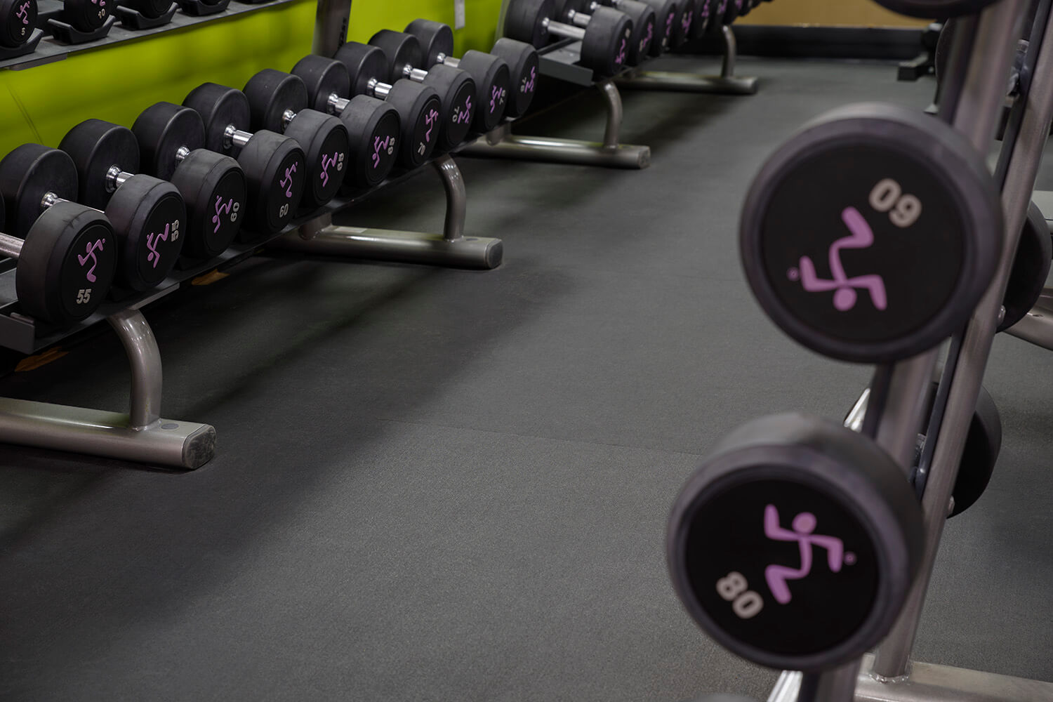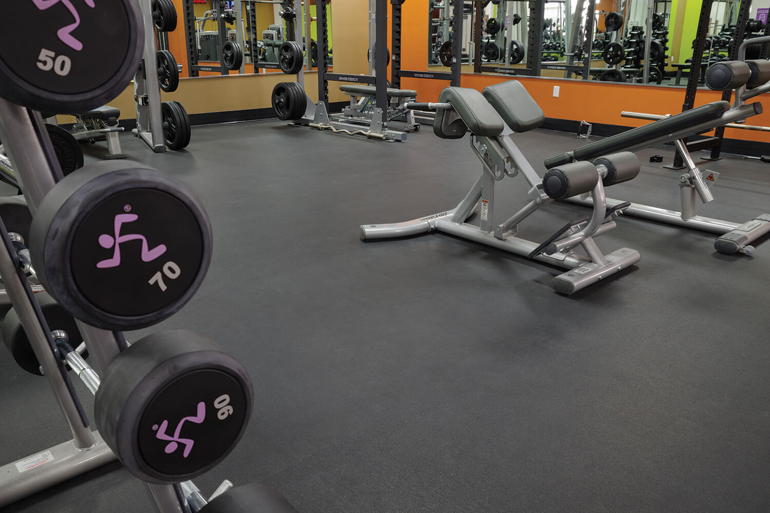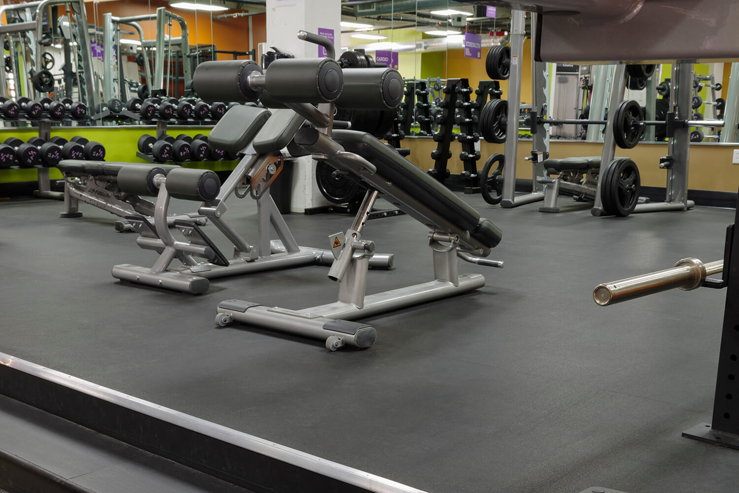 The Anytime Fitness Gym in Philadelphia Fairmount showcases the exceptional performance and design of REGUPOL sonusfit m520 flooring. Located on the second floor of a building shared with Univest Bank and Trust Co. and the AF Bornot Dye Work Lofts, the project required a flooring solution with superior acoustic properties. From the initial planning stages, it was evident that premium sound insulation was crucial to reduce noise and maintain a comfortable atmosphere for neighboring occupants.